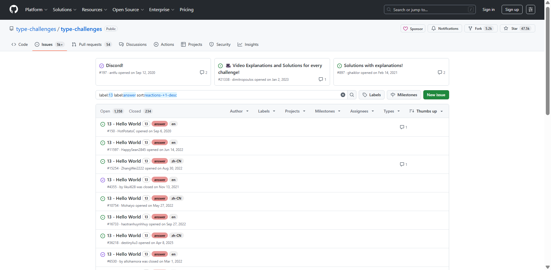 解答ページはGithubのIssueになっているので、世界中のエンジニアの解答を閲覧できます。